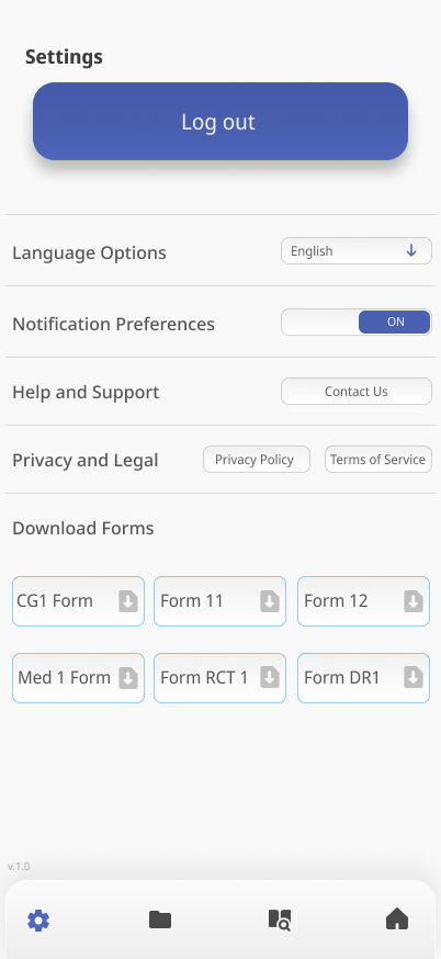 Settings: Here the user is able to log out of their account and find necessary information needed like contacting support, turning off notifications, accessing privacy data, terms of use and downloading relevant tax forms as PDFs which they can fill and file to the Revenue. Having these forms in the in app ensures the user has everything in one place without having to spend time looking online.